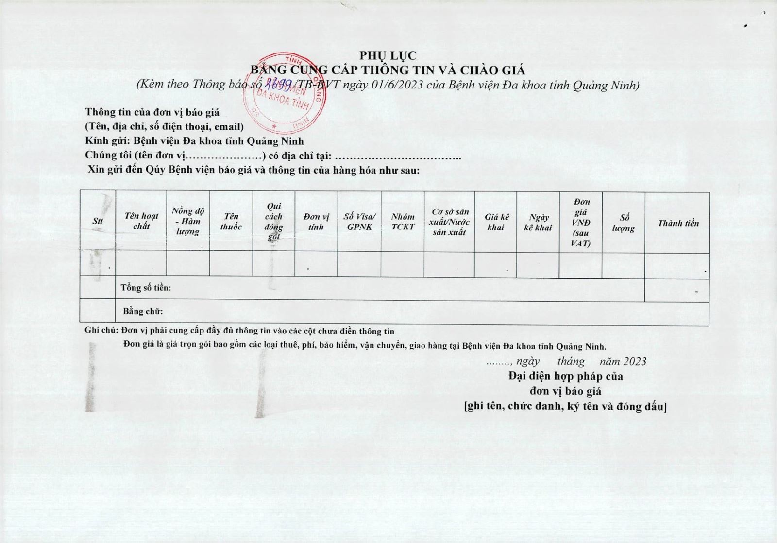 Thông báo mời báo giá thuốc của Bệnh viện (1699)