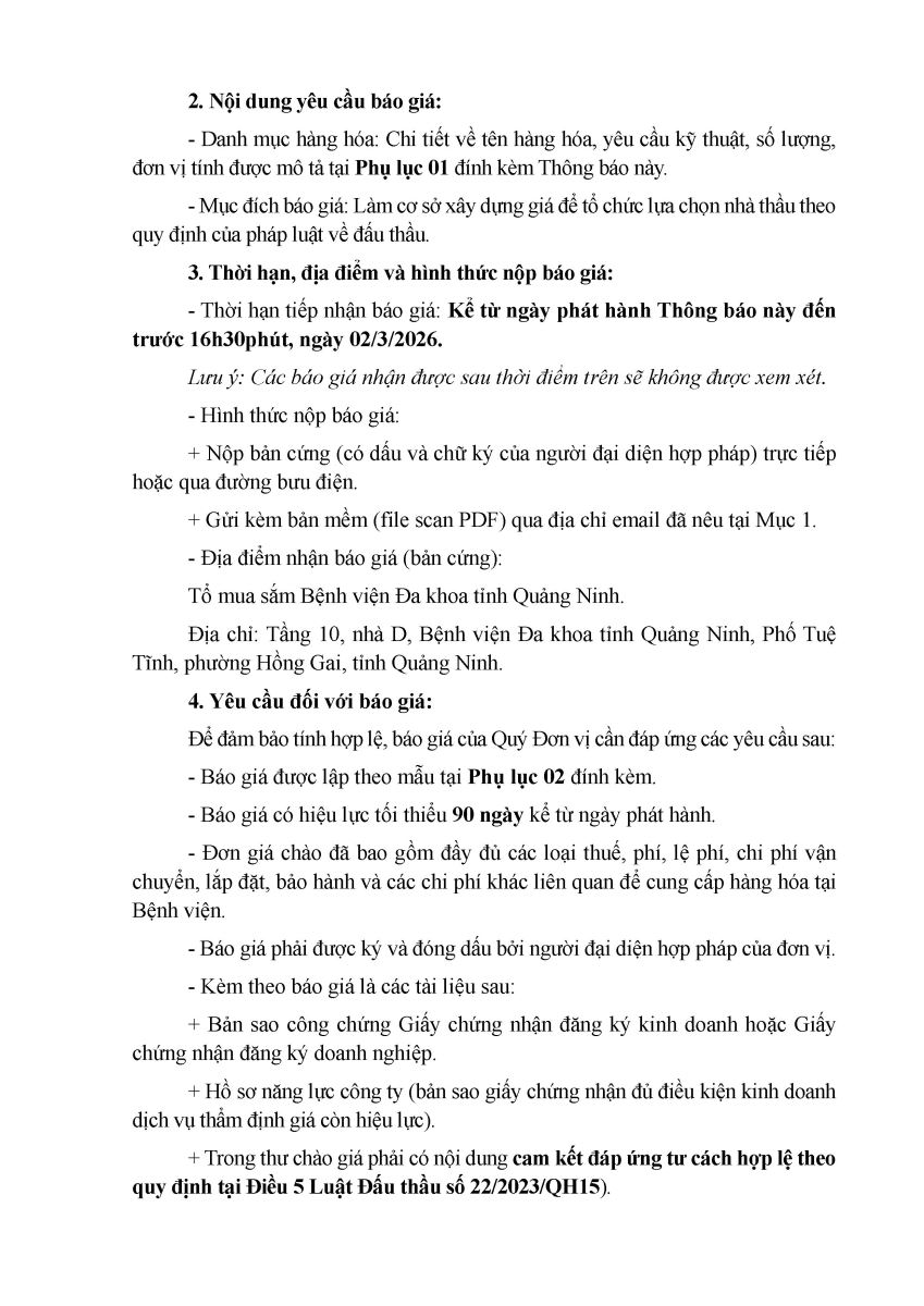 - Thông báo yêu cầu cung cấp báo giá các thiết bị y tế thuộc dự toán thu, chi ngân sách nhà nước năm 2026 đợt 2 (509)