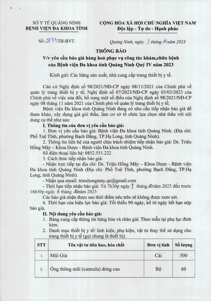 - Thông báo yêu cầu báo giá hàng hoá phục vụ công tác khám chữa bệnh (2868)
