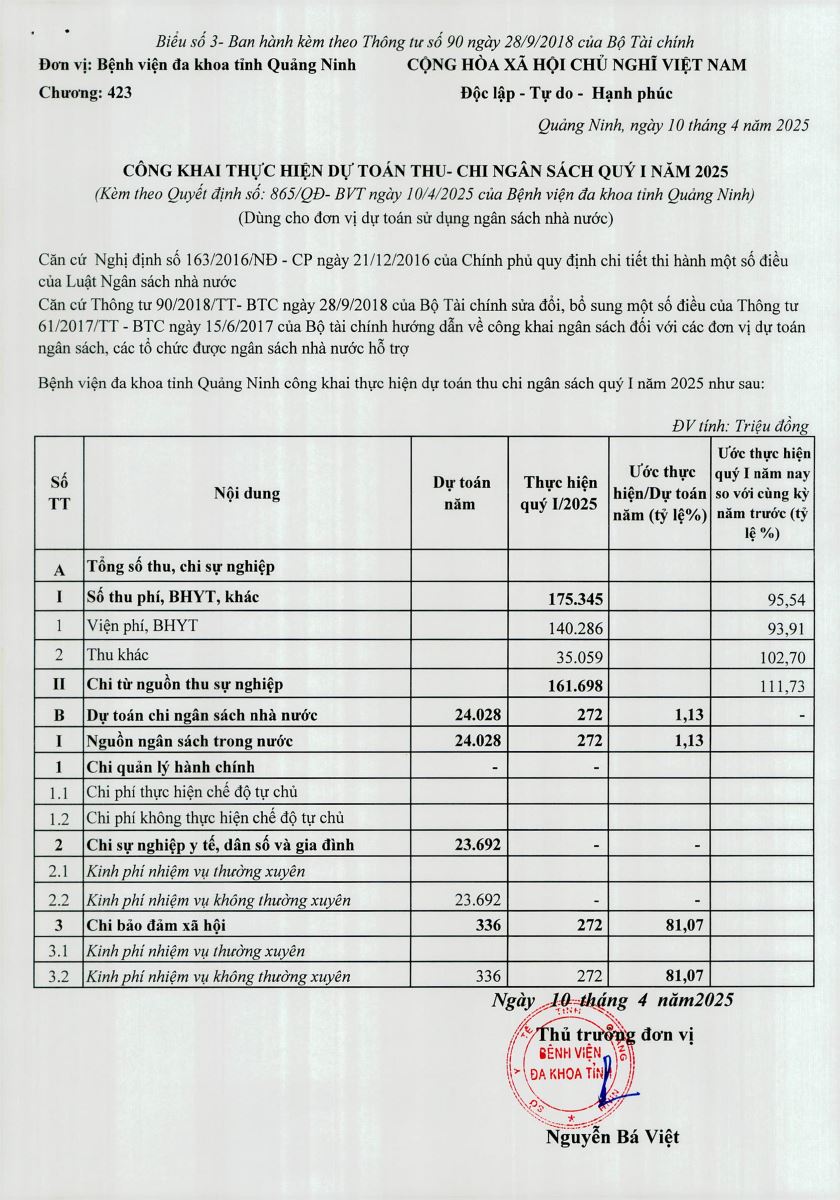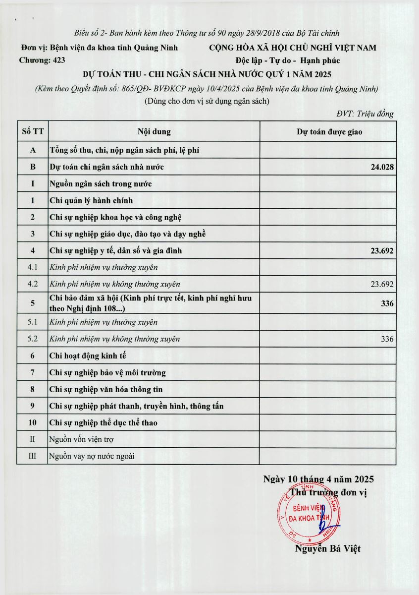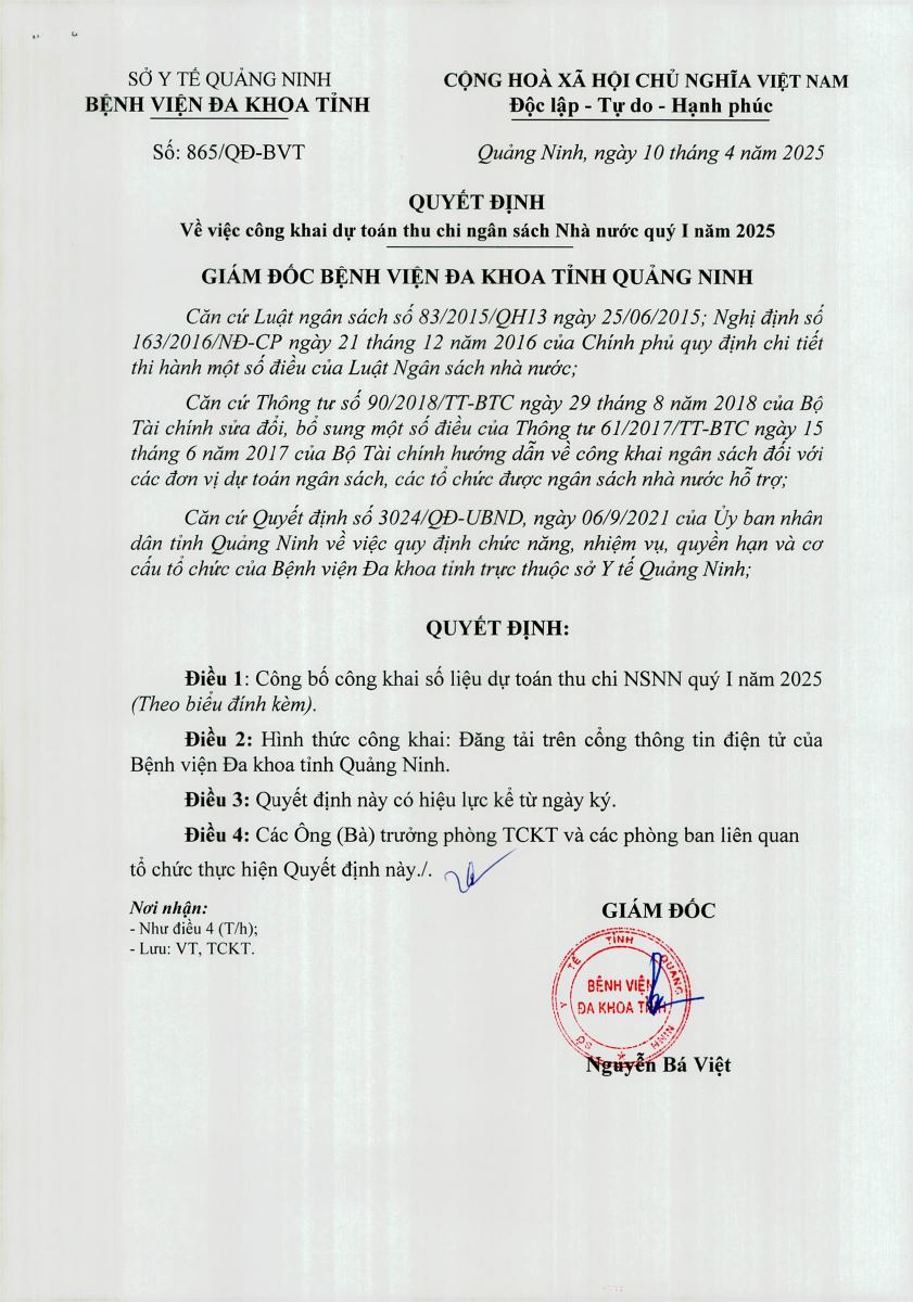 Quyết định về việc công khai dự toán thu chi ngân sách nhà nước quý I năm 2025 (865)