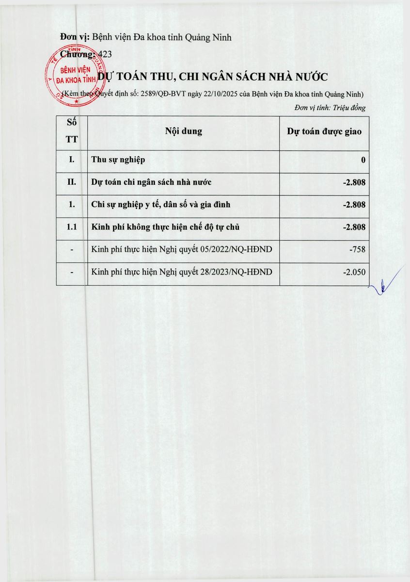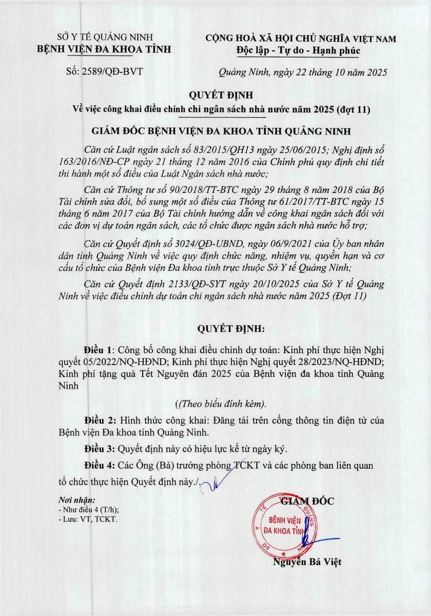 - Quyết định v/v công khai điều chỉnh dự toán kinh phí không tự chủ - Kinh phí mua sắm, sửa chữa, bảo dưỡng TTB năm 2025 cho các đơn vị trực thuộc SYT (đợt 1) (1362)