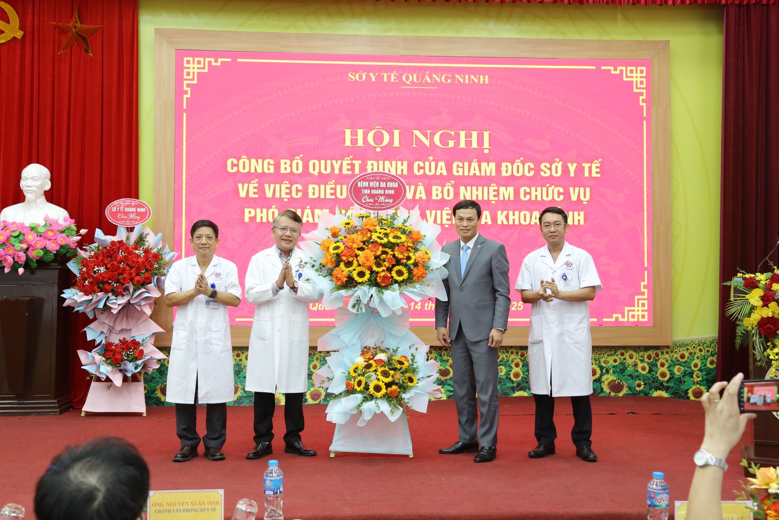 Tập thể Ban giám đốc bệnh viện tặng hoa chúc mừng BSCKII Ngô Văn Khánh nhận quyết định bổ nhiệm Phó giám đốc bệnh viện Đa khoa tỉnh Quảng Ninh