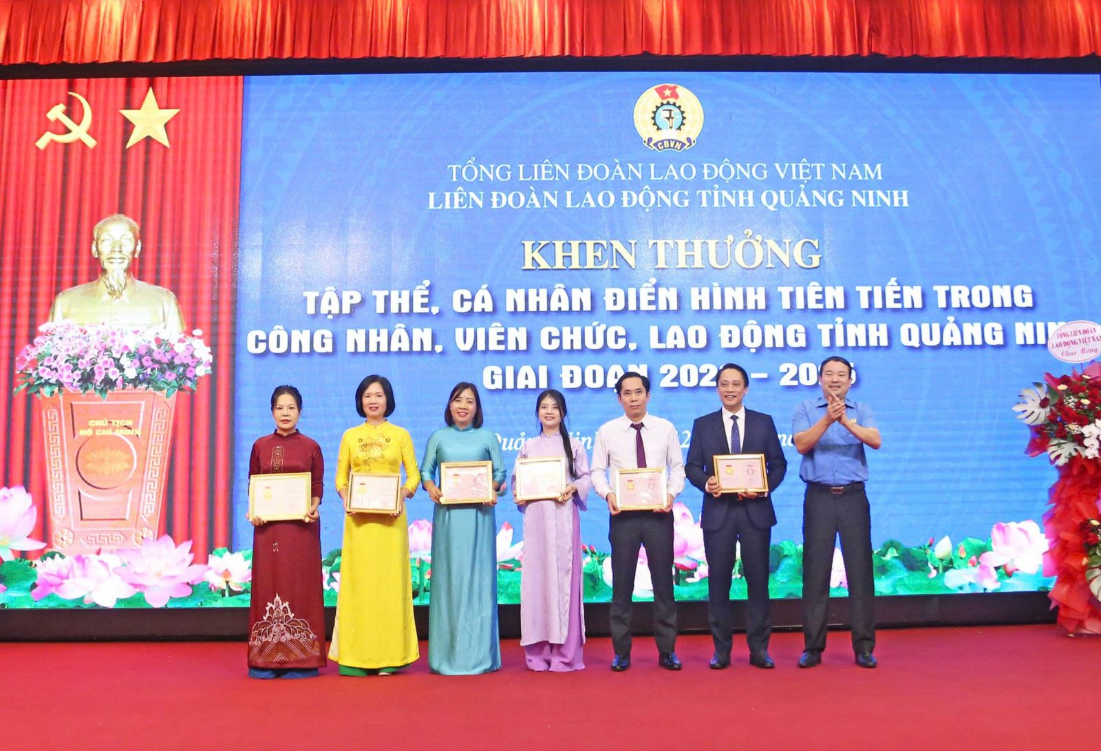 Bác sĩ Ngô Quang Chức (thứ 2 bên phải) được LĐLĐ tỉnh khen thưởng điển hình tiên tiến trong công nhân viên chức lao động tỉnh Quảng Ninh, giai đoạn 2020-2025.