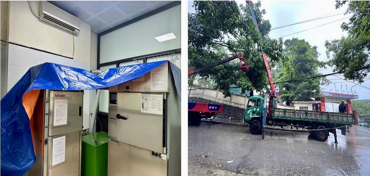 Bệnh viện tiến hành kiểm tra toàn diện cơ sở vật chất, từ hệ thống cửa sổ, cửa ra vào đến hệ thống dây điện, cáp truyền và các phòng bệnh, phòng làm việc. Mọi nguy cơ như: bay tốc mái, đổ tường, ngập úng do hệ thống thoát nước quá tải được rà soát và báo cáo để có biện pháp khắc phục và gia cố kịp thời.