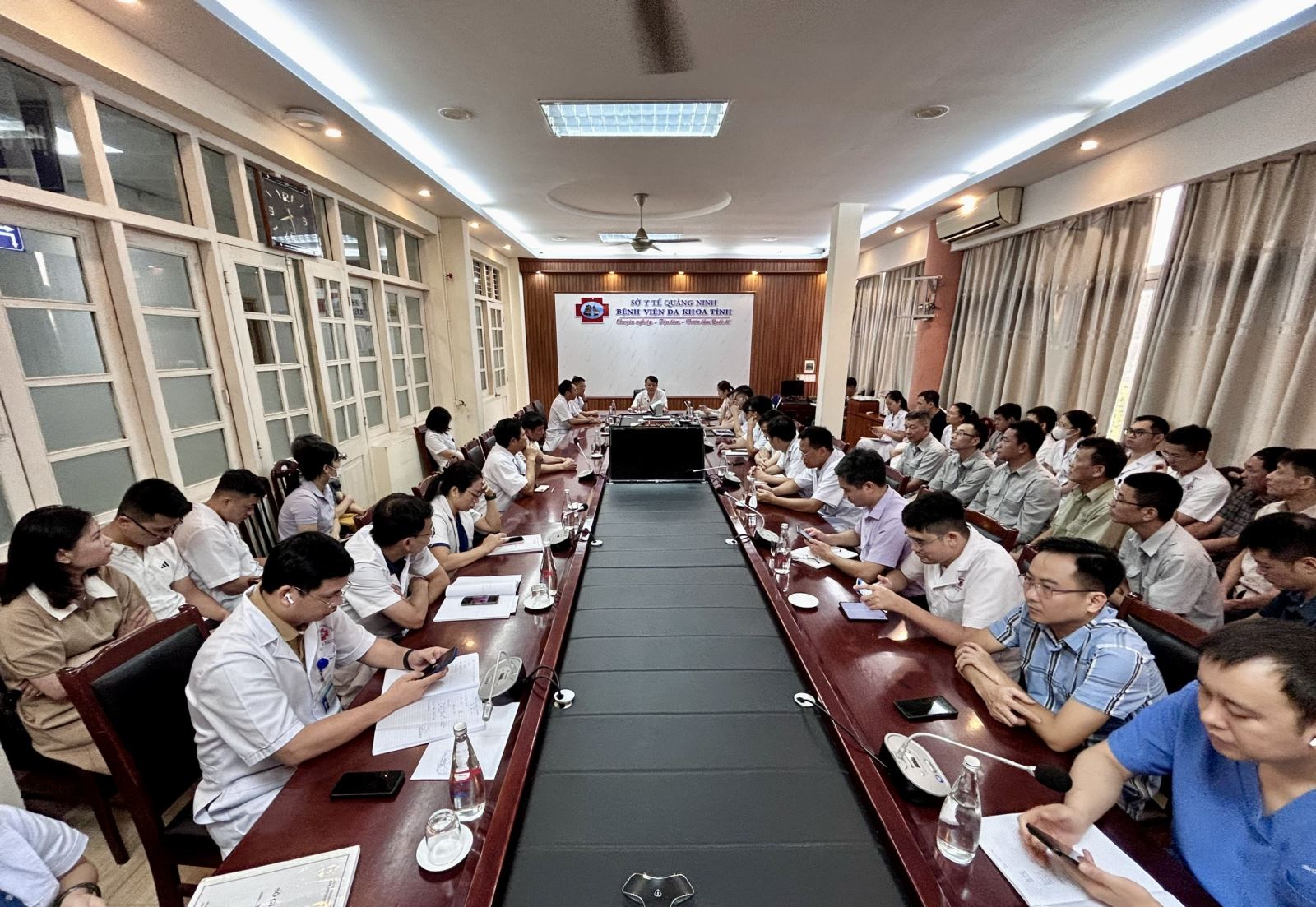 Ban giám đốc Bệnh viện Đa khoa tỉnh Quảng Ninh họp khẩn cấp để triển khai các biện pháp phòng chống bão.