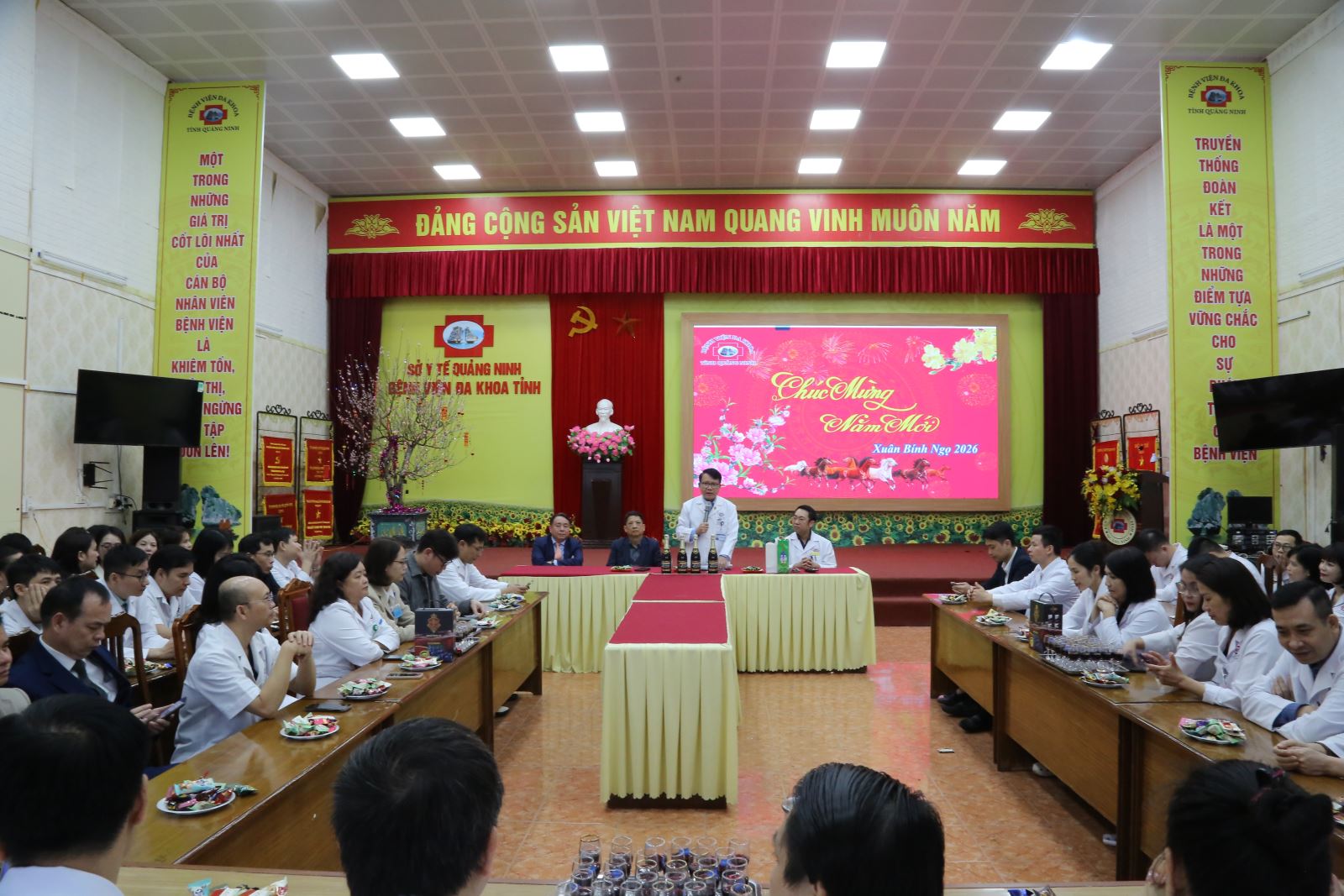 Sáng nay 23/2/2026 tức mùng 7 Tết âm lịch, bệnh viện tổ chức khai xuân, giao ban triển khai nhiệm vụ khám chữa bệnh đầu năm 2026. Phát biểu tại buổi khai xuân, TTƯT.Ths.BSCKII Nguyễn Bá Việt – Giám đốc Bệnh viện đã gửi lời chúc mừng năm mới tới toàn thể lãnh đạo các khoa, phòng cùng đội ngũ cán bộ, viên chức, người lao động; đồng thời khẳng định quyết tâm trong năm 2026, tập thể bệnh viện sẽ tiếp tục đoàn kết, đồng lòng, nỗ lực thực hiện thắng lợi các nhiệm vụ Ngành Y tế giao, cống hiến vì sự phát triển bền vững của Bệnh viện Đa khoa tỉnh Quảng Ninh.
