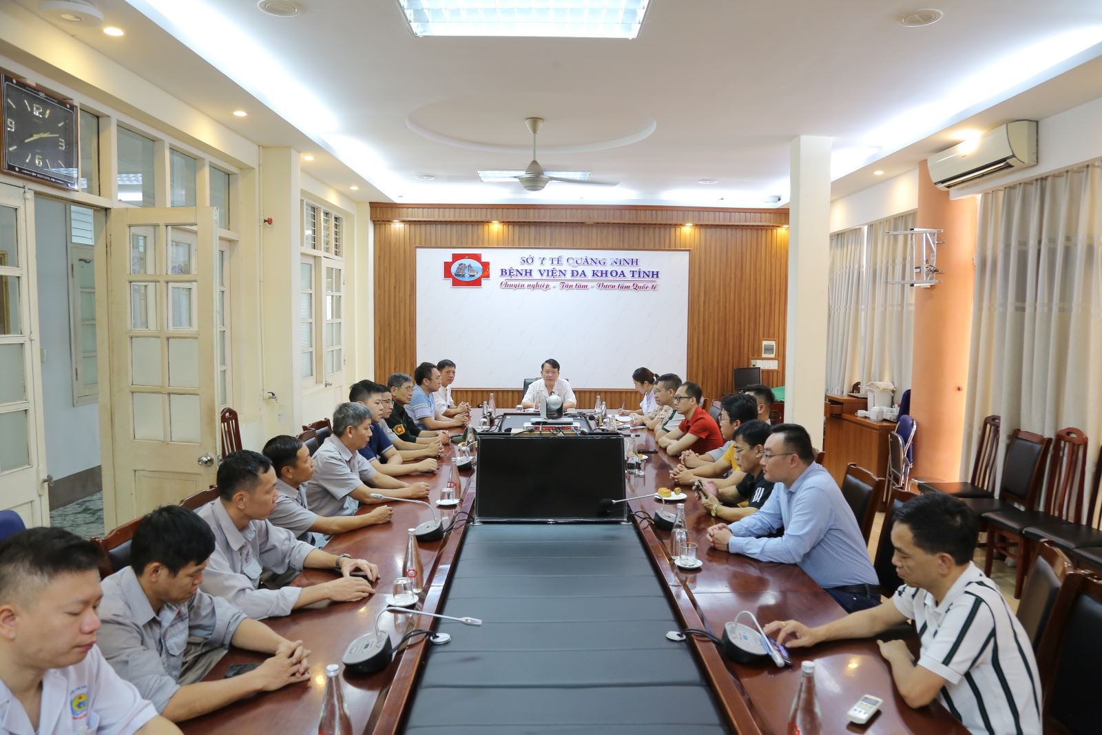 Ban giám đốc Bệnh viện Đa khoa tỉnh Quảng Ninh họp khẩn cấp để triển khai các biện pháp phòng chống bão.