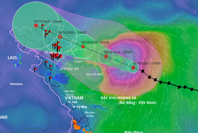 Vị trí tâm bão Matmo cập nhật lúc 01h ngày hôm nay 05/10/2025 (Ảnh: NCHMF)
