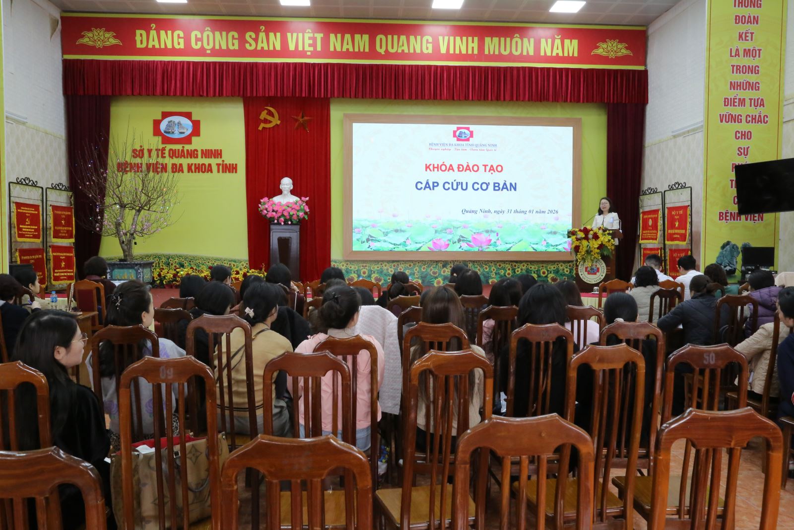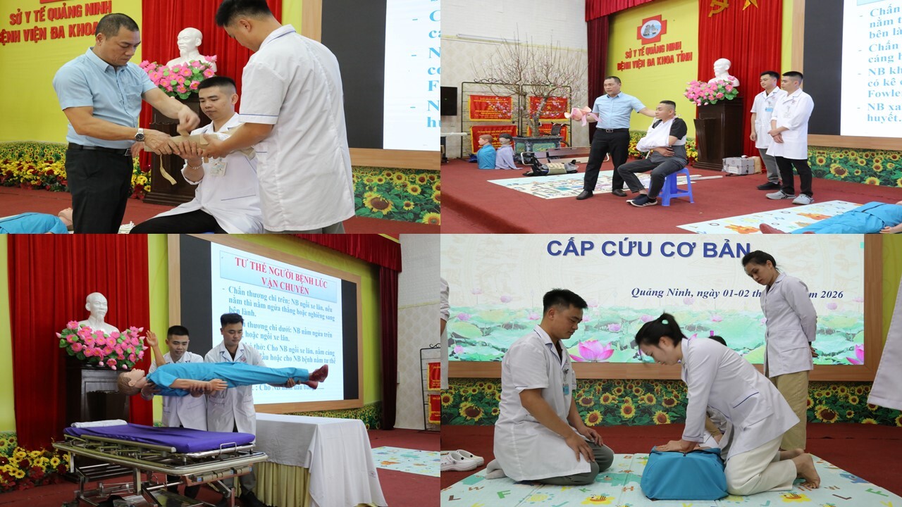 Thực hiện chỉ đạo của Sở Y tế Quảng Ninh về tăng cường đào tạo, hỗ trợ chuyên môn cho y tế cơ sở, trong hai ngày 31/01 và 01/02/2026, Bệnh viện Đa khoa tỉnh Quảng Ninh đã tổ chức khóa đào tạo cấp cứu cơ bản cho 70 bác sĩ, điều dưỡng, kỹ thuật viên đang công tác tại 5 trạm y tế phường trên địa bàn tỉnh gồm Hạ Long, Hồng Gai, Cao Xanh, Hà Tu và Hà Lầm.