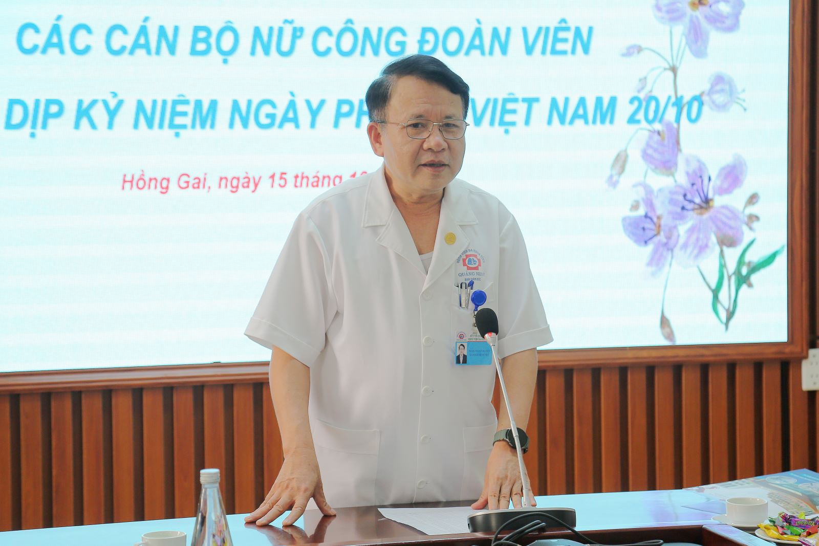 Gửi lời chúc tốt đẹp nhất nhân dịp ngày Phụ nữ Việt Nam 20/10, Bs.CKII Nguyễn Bá Việt - Giám đốc Bệnh viện ghi nhận và biểu dương những đóng góp to lớn của Ban nữ công cùng các nữ cán bộ, đoàn viên công đoàn dù ở cương vị nào cũng luôn hoàn thành tốt nhiệm vụ được giao, góp phần vào sự nghiệp xây dựng và phát triển bệnh viện.