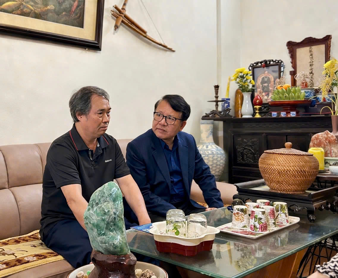 Đồng chí Nguyễn Bá Việt- Bí thư Đảng bộ, Giám đốc bệnh viện tới thăm,trao quà tết và chúc mừng năm mới đồng chí Đoàn Hùng Thính- nguyên Phó giám đốc Sở Y tế Quảng Ninh.