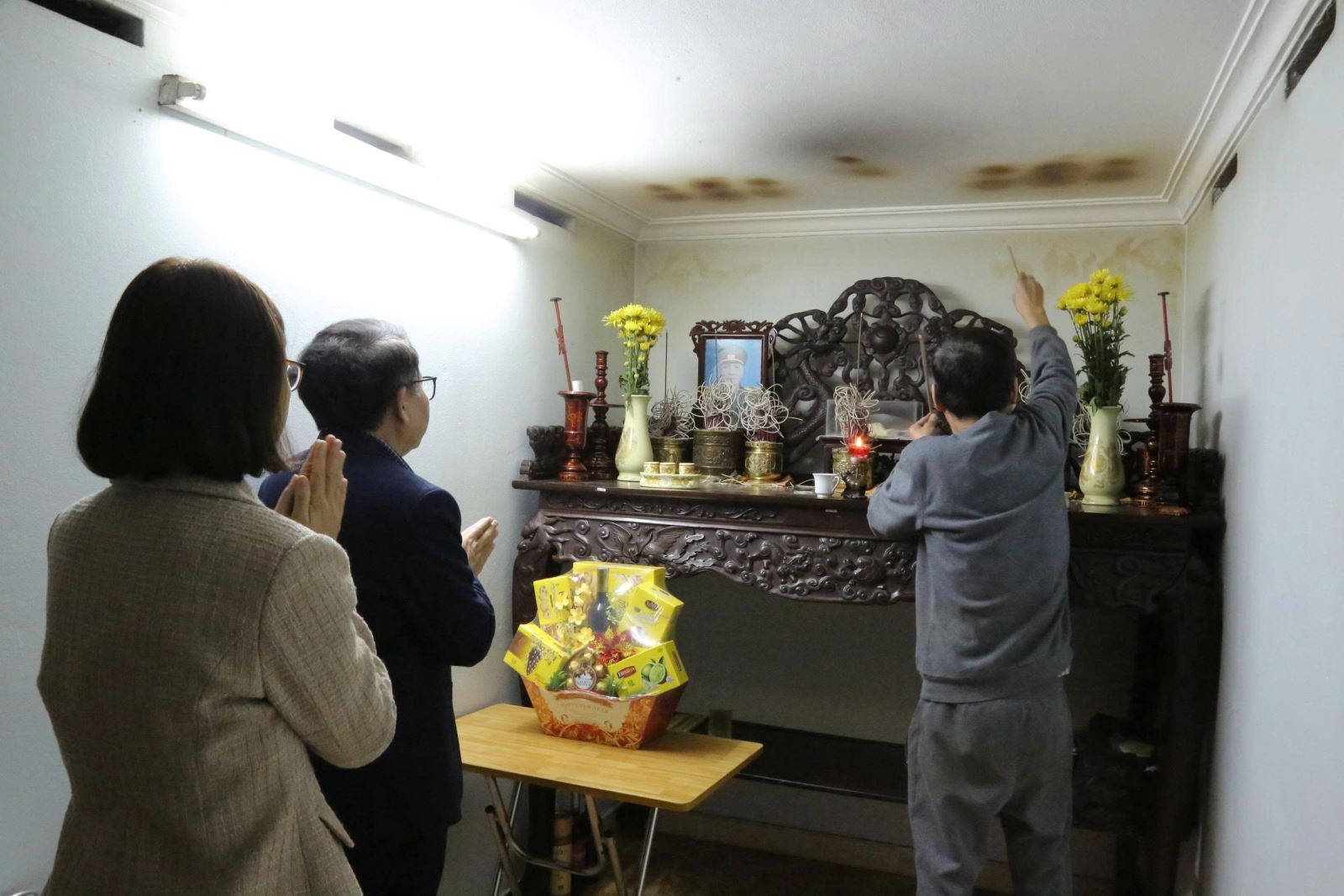 Đồng chí Nguyễn Bá Việt- Bí thư Đảng bộ, Giám đốc bệnh viện thắp hương tri ân tưởng nhớ tại tư gia 2 đồng chí Nguyễn Văn Chính và Vũ Văn Nhậm - nguyên Phó giám đốc bệnh viện Đa khoa tỉnh Quảng Ninh.