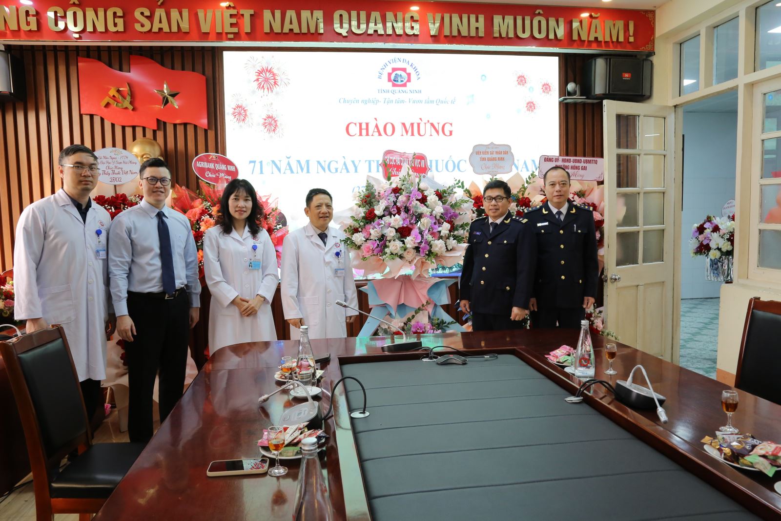 Nhân kỷ niệm 71 năm Ngày Thầy thuốc Việt Nam 27/2, Bệnh viện Đa khoa tỉnh Quảng Ninh cũng đã đón nhận những tình cảm, lẵng hoa tươi thắm và lời chúc mừng tri ân sâu từ các đoàn lãnh đạo, các cơ quan, đơn vị doanh nghiệp gửi tới tập thể Bệnh viện.