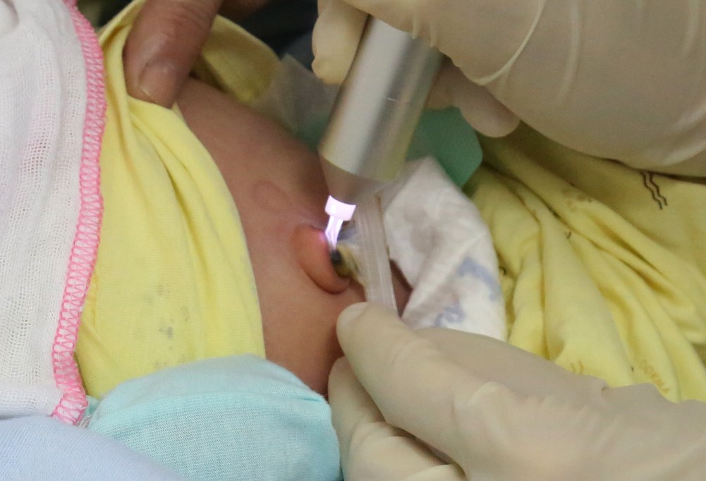 Đối với trẻ sơ sinh, cuống rốn thường phải mất từ 10 – 14 ngày mới khô và rụng. Trẻ khi này sức đề kháng còn non yếu, quá trình tắm, chăm sóc và tiếp xúc với môi trường bên ngoài nếu không cẩn trọng có thể gây nhiễm trùng rốn, thậm chí là nguy cơ uốn ván – một trong những nguyên nhân gây tử vong hàng đầu ở trẻ sơ sinh. Nhằm hạn chế tối đa tình trạng này, các bác sĩ khoa Phụ sản Bệnh viện Đa khoa tỉnh đã sử dụng tia plasma lạnh chiếu vào cuống rốn trẻ sơ sinh để rốn không bị chảy dịch mủ, khô và rụng nhanh trong vòng 5-7 ngày với khoảng từ 2-3 lần chiếu, giảm thiểu tối đa nguy cơ nhiễm trùng rốn ở trẻ.