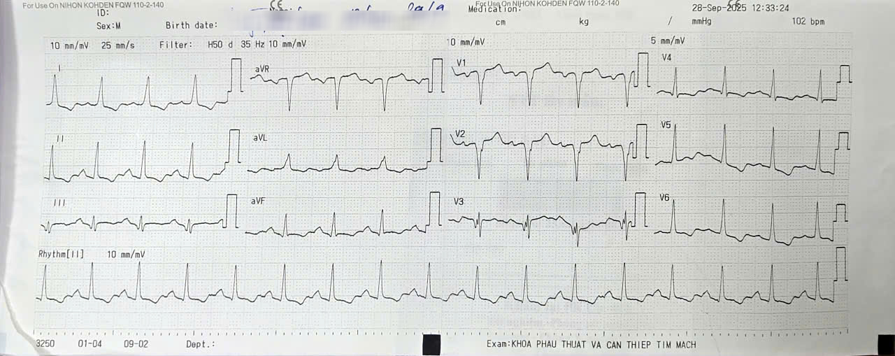 Sau can thiệp, nhịp tim của bệnh nhân được khôi phục ổn định, tình trạng lâm sàng cải thiện rõ rệt. Theo dõi bệnh nhân tỉnh táo, hết choáng ngất, chỉ số tim mạch ổn định, vận động nhẹ nhàng.