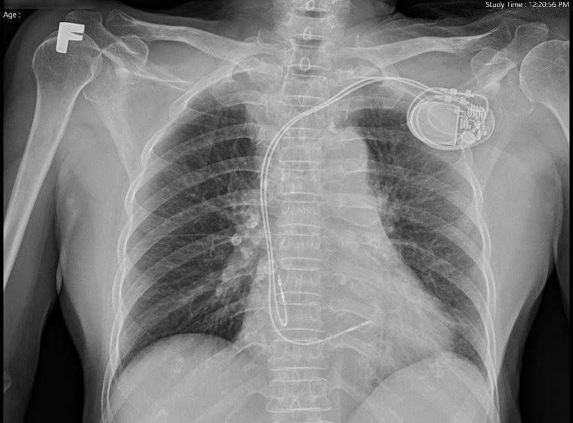 Hình ảnh X-quang ngực sau cấy máy tạo nhịp bó nhánh trái.