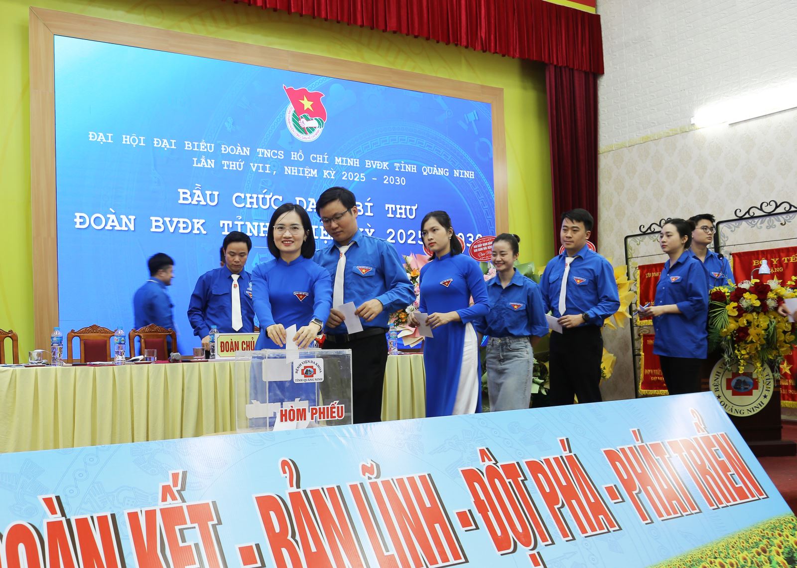 Với tinh thần dân chủ và trách nhiệm cao, Đại hội đã tiến hành bỏ phiếu bầu Ban Chấp hành Đoàn Thanh niên Bệnh viện Đa khoa tỉnh Quảng Ninh khoá VII, nhiệm kỳ 2025-2030 với 14 đồng chí; đồng chí Nguyễn Văn Linh, Bí thư Chi đoàn Sản – Hồi sức tích cực đắc cử làm Bí thư Đoàn thanh niên Bệnh viện Đa khoa tỉnh, nhiệm kỳ 2025 - 2030. Đại hội cũng đã bầu đoàn Đại biểu dự Đại hội Đoàn cấp trên với 15 đại biểu.