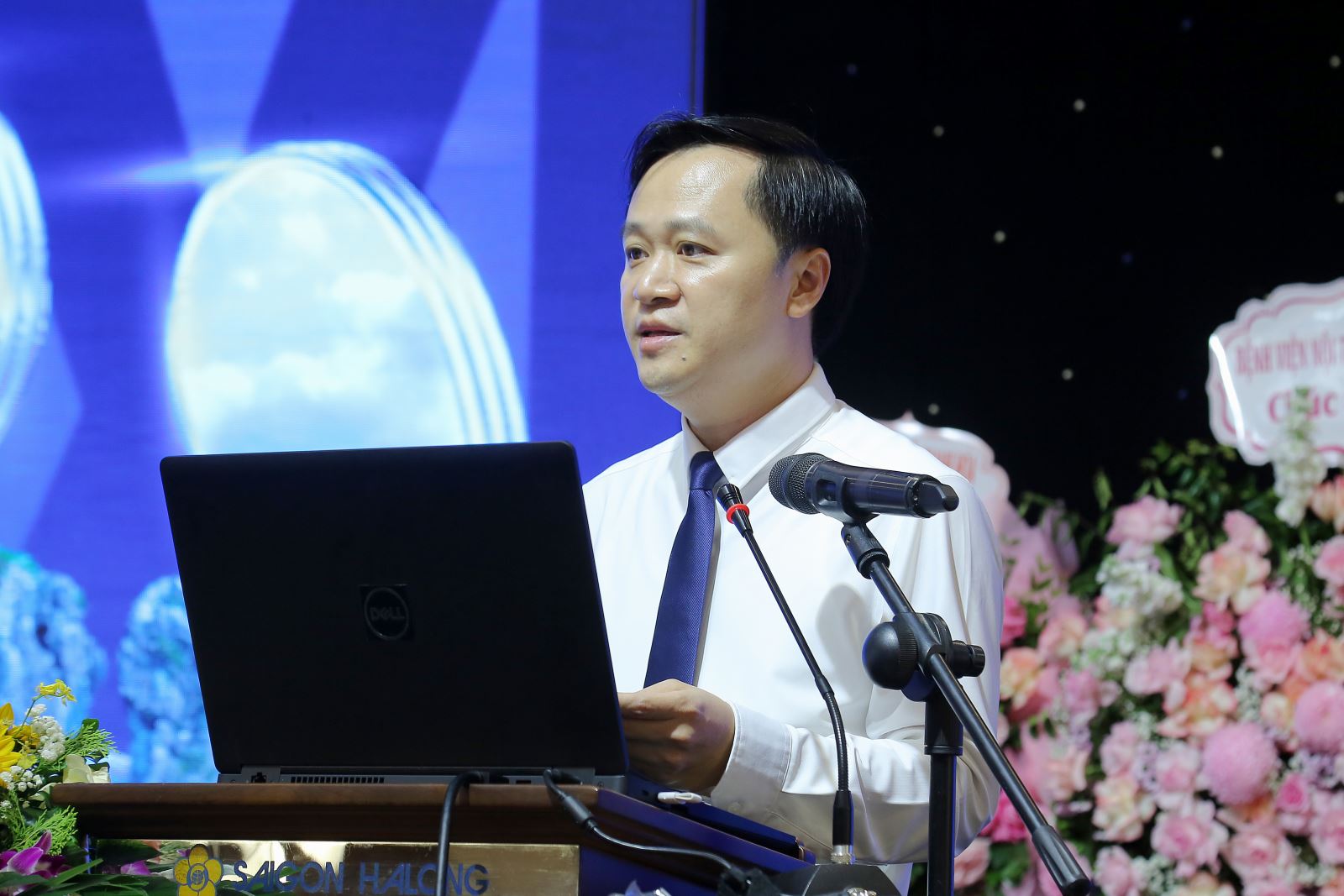 Bs.CKII Bùi Mạnh Hùng – Phó Giám đốc Sở Y tế Quảng Ninh phát biểu và tặng hoa chúc mừng Hội nghị.
