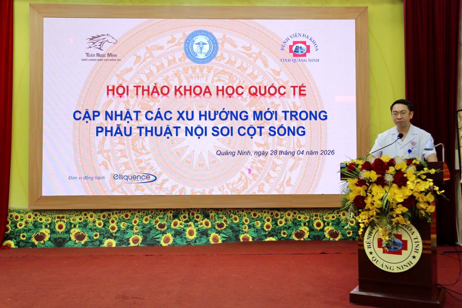 Hôm nay, 28/04/2026 Bệnh viện Đa khoa tỉnh Quảng Ninh đã tổ chức thành công hội thảo quốc tế về phẫu thuật nội soi cột sống với sự tham gia của nhiều chuyên gia hàng đầu trong nước và quốc tế. Hội thảo là diễn đàn học thuật quan trọng nhằm cập nhật các tiến bộ mới, đồng thời thúc đẩy hợp tác chuyên môn trong lĩnh vực phẫu thuật cột sống ít xâm lấn.