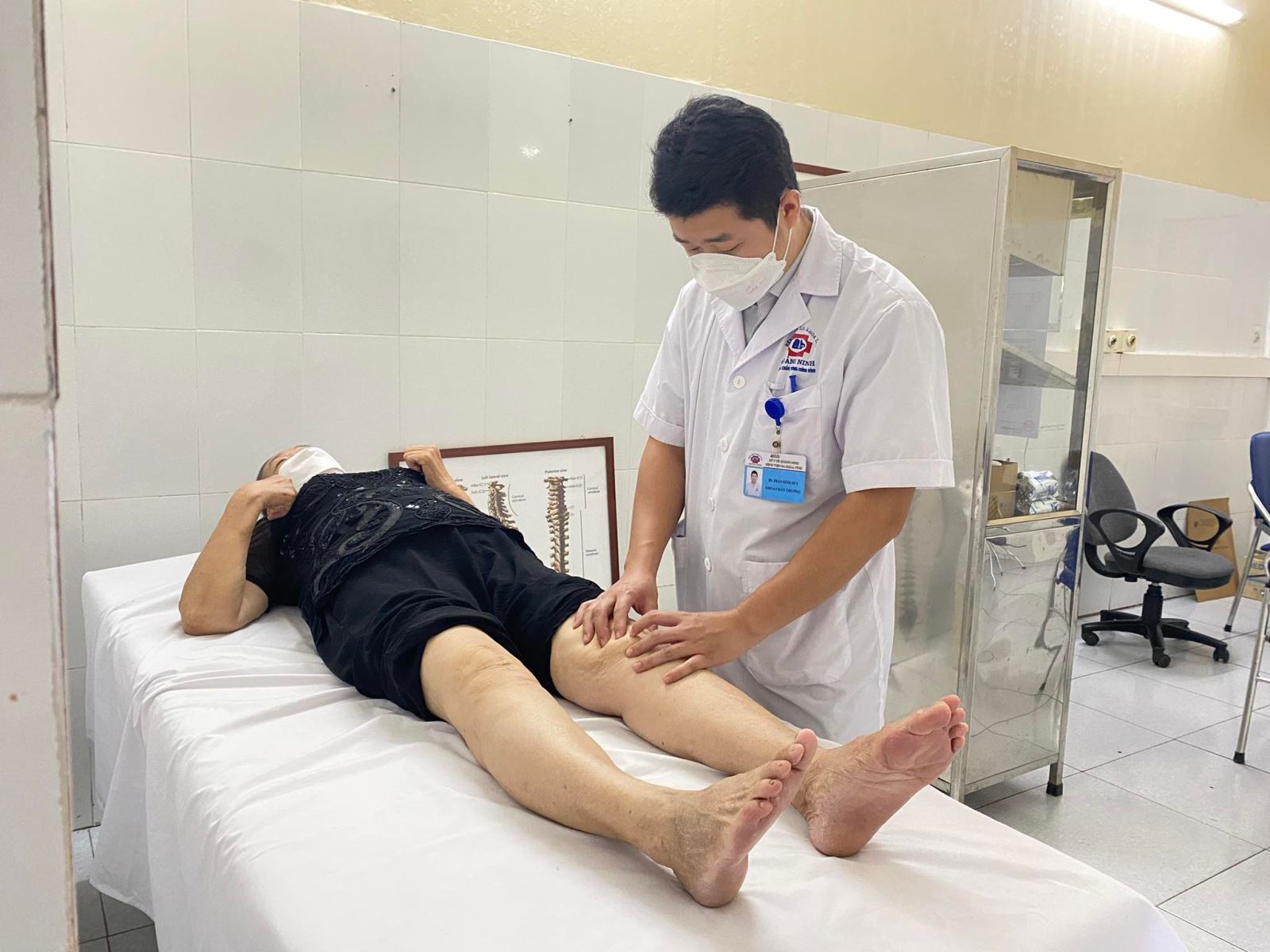 Bác sĩ kiểm tra lại khớp gối nhân tạo cho bệnh nhân sau 3 năm phẫu thuật.