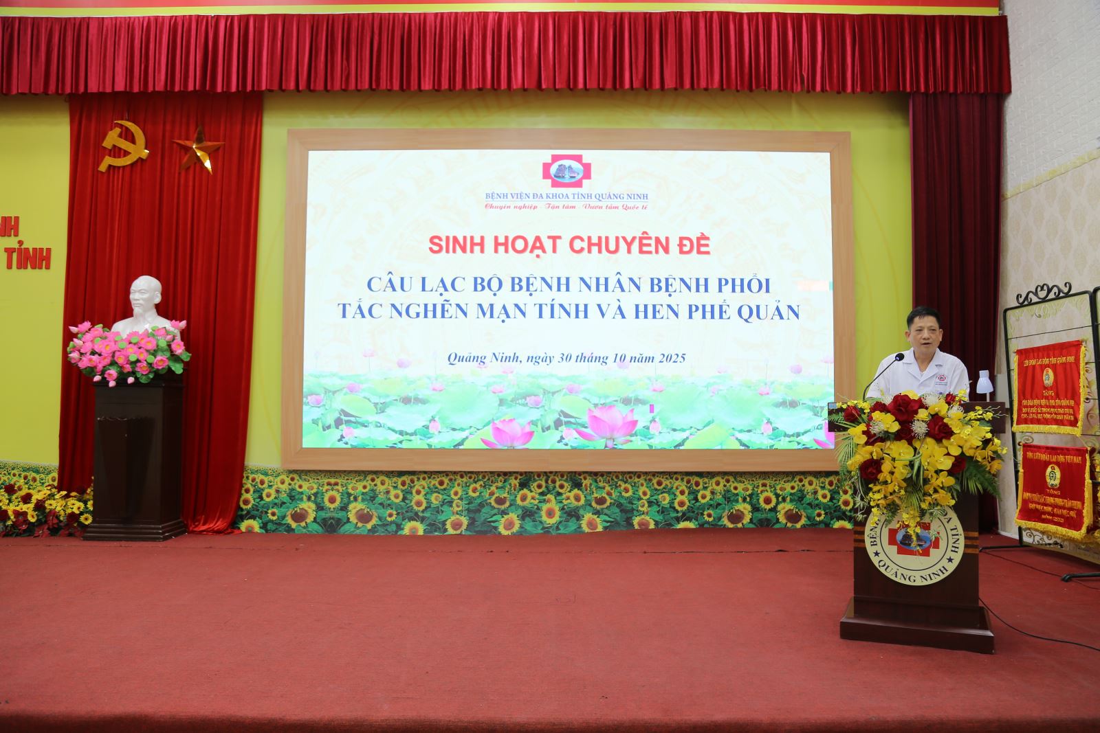 Tặng hoa chúc mừng sự hoạt động trở lại của CLB, bác sĩ CKII Vũ Anh Tuấn – Phó Giám đốc Bệnh viện Đa khoa tỉnh, nhấn mạnh: Bệnh hen và phổi tắc nghẽn mãn tính đang trở thành vấn đề y tế công cộng đáng lo ngại. Việc tái khởi động CLB Hen và COPD không chỉ giúp nâng cao nhận thức của cộng đồng mà còn là cầu nối để người bệnh tiếp cận các phương pháp điều trị khoa học, hiệu quả. Phó Giám đốc đề nghị chủ nhiệm CLB cùng đội ngũ chuyên gia, bác sĩ của khoa thường xuyên cập nhật kiến thức mới về bệnh lý này để người bệnh được tư vấn, điều trị bằng phương pháp mới, sử dụng thuốc hiệu quả, đồng bộ và tối ưu nhất. Đồng thời hỗ trợ người bệnh quản lý bệnh tốt ngay tại nhà, giúp họ sống khỏe và chất lượng với bệnh lý mãn tính. Qua đó khẳng định Bệnh viện Đa khoa tỉnh luôn đồng hành cùng người bệnh, nhằm nâng cao chất lượng cuộc sống cho người bệnh.