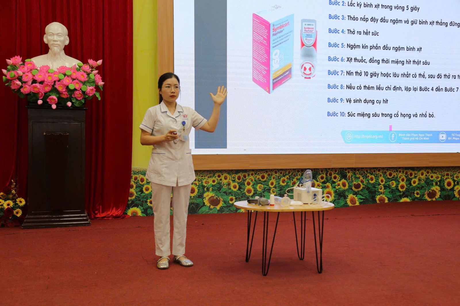 Điều dưỡng khoa Hô hấp và BNN hướng dẫn sử dụng một số loại bình xịt, hít cho người bệnh hen và COPD