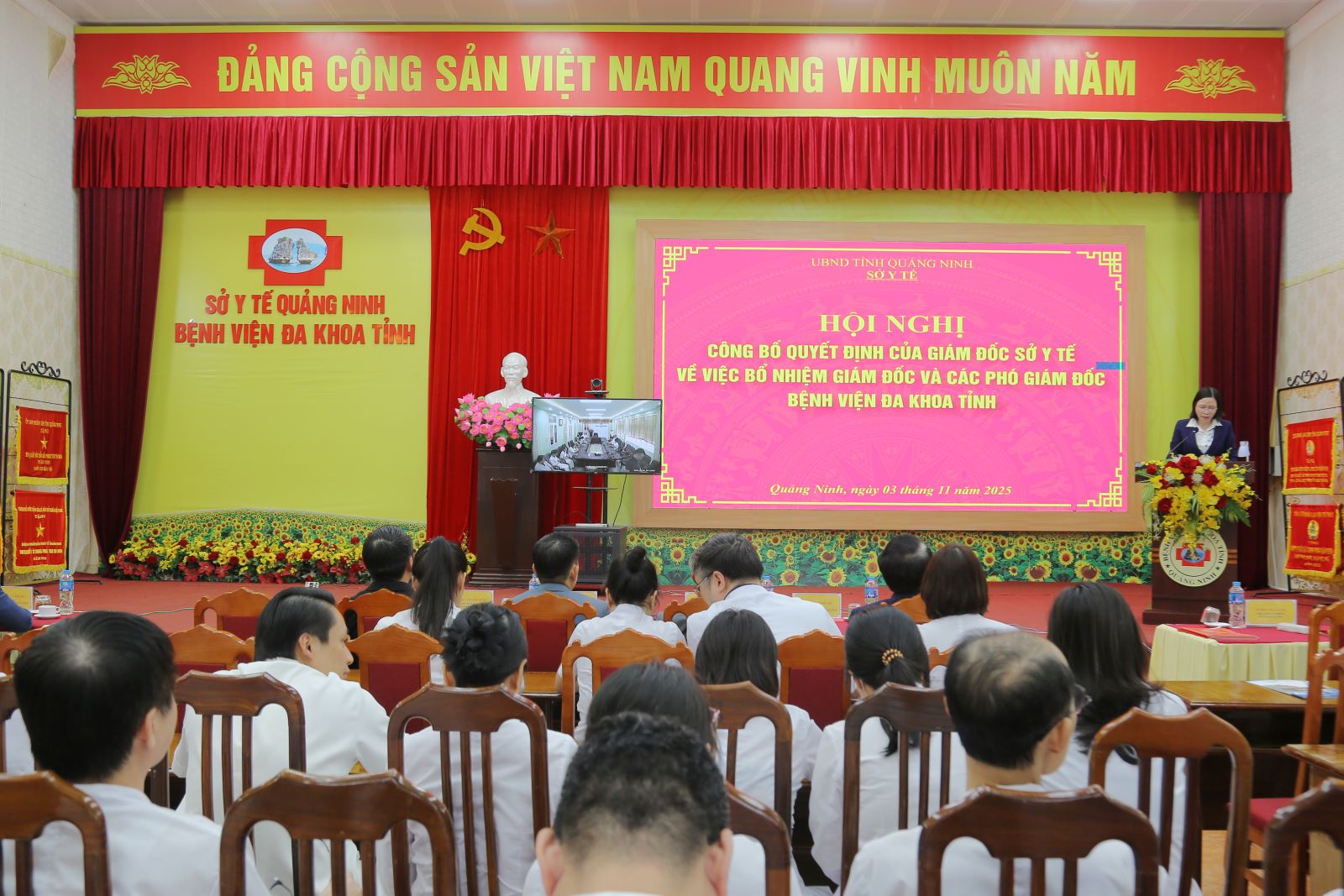 Thực hiện Quyết định của UBND tỉnh Quảng Ninh về việc tổ chức lại Bệnh viện Đa khoa tỉnh, chiều ngày 03/11/2025, Sở Y tế Quảng Ninh tổ chức Hội nghị công bố quyết định bổ nhiệm Giám đốc và các Phó Giám đốc Bệnh viện Đa khoa tỉnh Quảng Ninh.