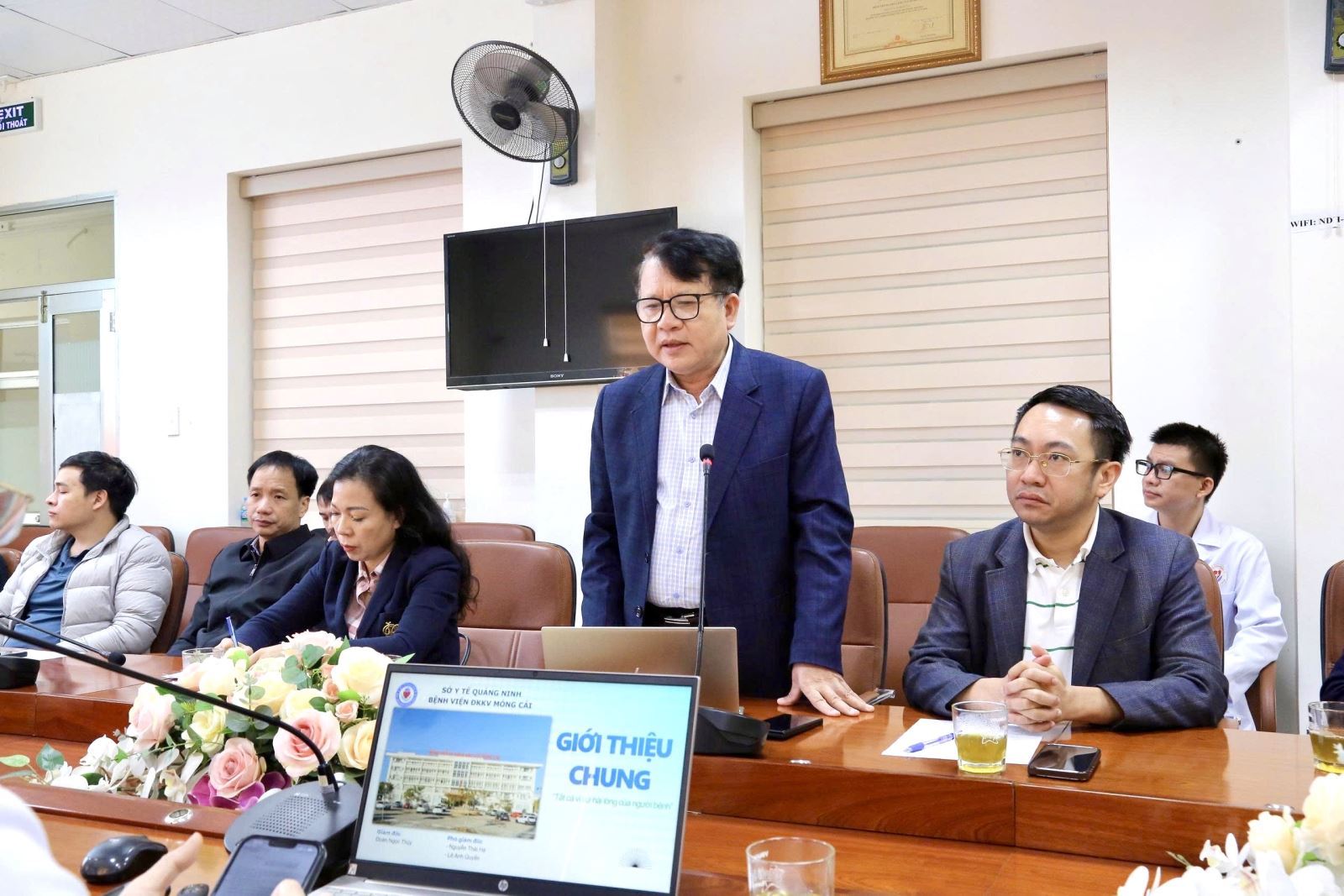 Tại buổi làm việc tại bệnh viện Đa khoa khu vực Móng Cái, Ths.BS Đoàn Ngọc Thủy- Giám đốc bệnh viện trân trọng cảm ơn sự hỗ trợ tích cực trong công tác hỗ trợ chuyên môn của bệnh viện đa khoa tỉnh đối với bệnh viện đa khoa khu vực Móng Cái. Xác định rõ công tác đào tạo và chỉ đạo tuyến luôn được xác định là một trong những nhiệm vụ chiến lược trong phát triển nguồn nhân lực y tế với mục tiêu chính là hỗ trợ kỹ thuật, nâng cao trình độ chuyên môn, kỹ năng thực hành lâm sàng cho đội ngũ y, bác sĩ tại tuyến cơ sở; đồng thời còn hỗ trợ tăng cường năng lực quản lý, tổ chức hoạt động khám chữa bệnh tại cơ sở chính cũng như cơ sở 2, cơ sở 3 trực thuộc bệnh viện nhằm nâng cao tay nghề chuyên môn cho đội ngũ cán bộ nhân viên và đem lại cho nhân dân hưởng thụ những tiến bộ y khoa mà chỉ được thực hiện ở tuyến tỉnh, tuyến trung ương ngay tại địa phương, giúp giảm chi phí đi lại cũng như chi phí và thời gian điều trị các nhóm bệnh lý.