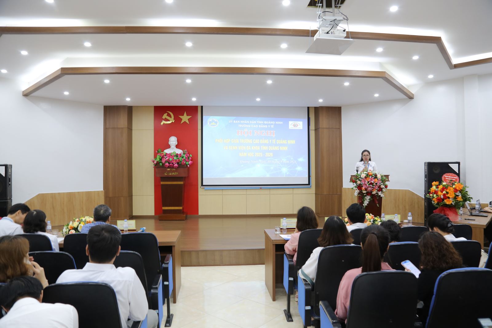 Mở đầu chương trình, ThS. Phạm Hoài Thương – đại diện phía trường Cao đẳng Y tế Quảng Ninh gửi lời chào mừng nồng nhiệt đến các đại biểu và bày tỏ lời cảm ơn sâu sắc đến Ban Giám đốc, các khoa – phòng của Bệnh viện đã tạo điều kiện thuận lợi cho việc thực tập, rèn nghề của sinh viên trong suốt thời gian qua. Thầy nhấn mạnh rằng việc phối hợp giữa hai đơn vị không chỉ là sứ mệnh trong đào tạo nguồn nhân lực y tế cho tỉnh nhà, mà còn là cơ hội để sinh viên tiếp cận thực tế về chuyên môn, đạo đức nghề nghiệp và văn hóa y tế.
